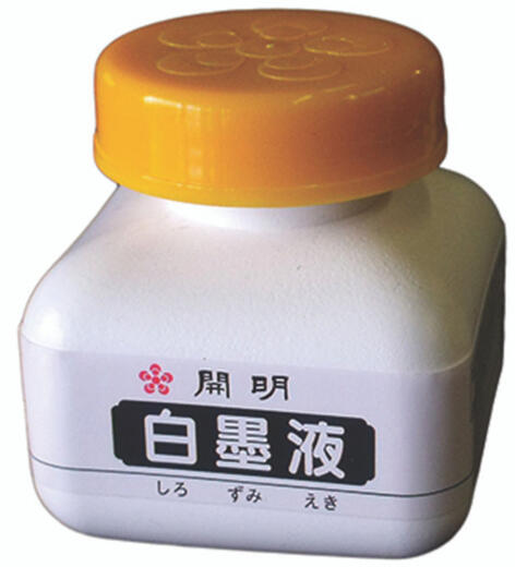 Bottles of liquified acrylic white, thinned to the consistency of ink. Used for penning against dark or black parchment. Dries opaque & waterproof; recommended to stir this ink, not shake.